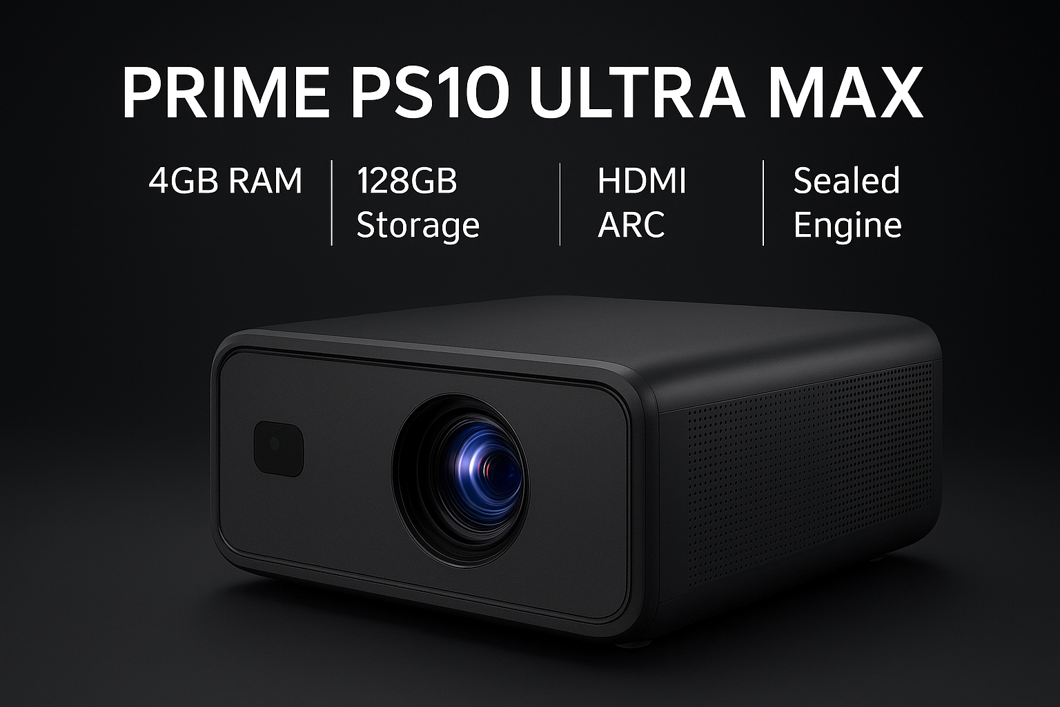 Prime Max Pro | Android OS Smart Projector | Netflix & OTT Certified | 4K Ultra HD HDR10 | Dolby Audio | HDMI ARC | WiFi 6 & Bluetooth 5.2 | Screen Mirroring | AI Auto Focus & Keystone Projector